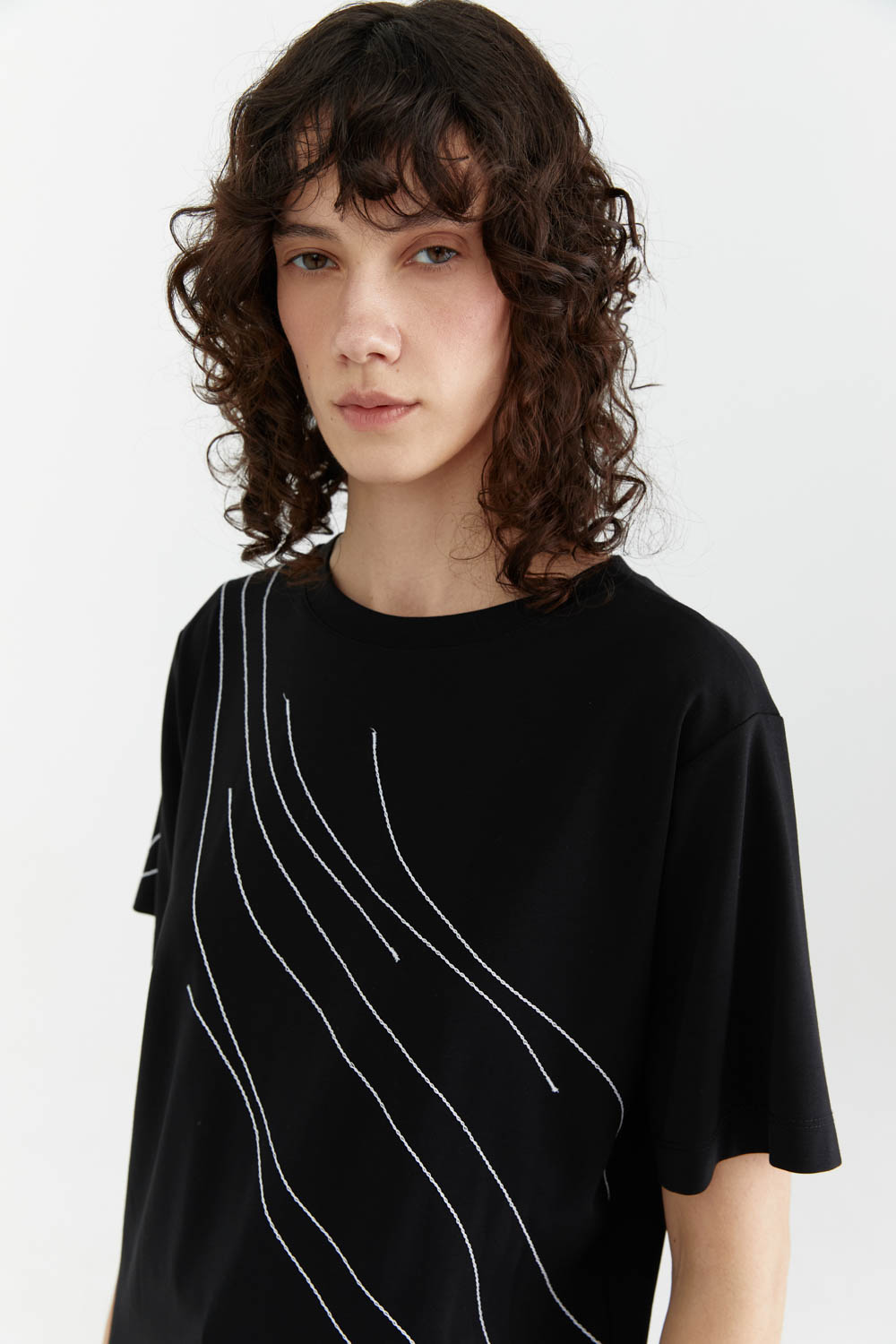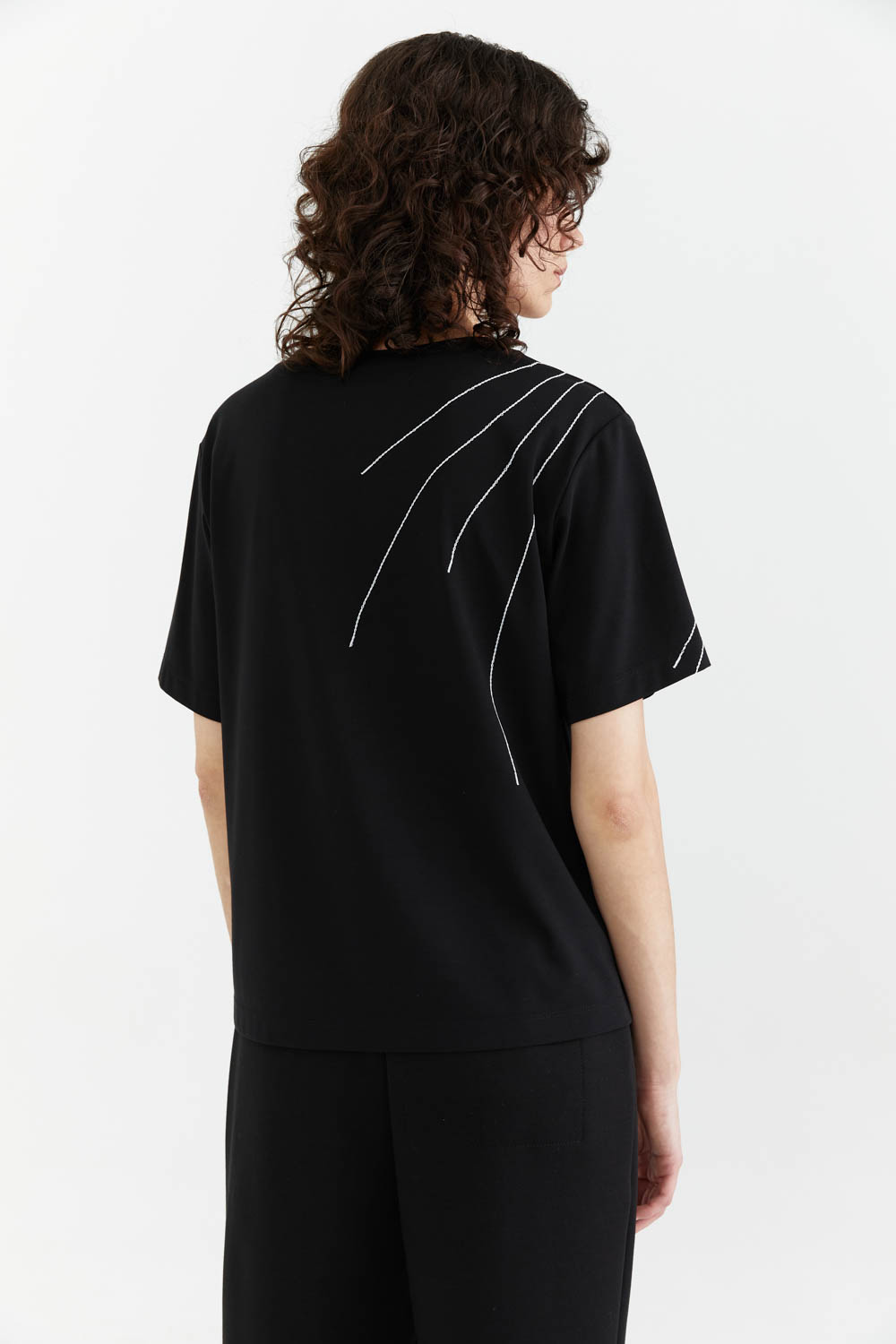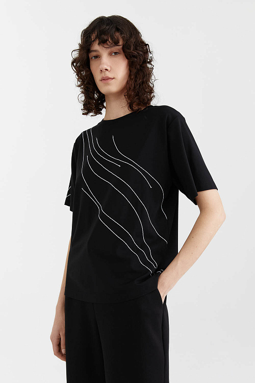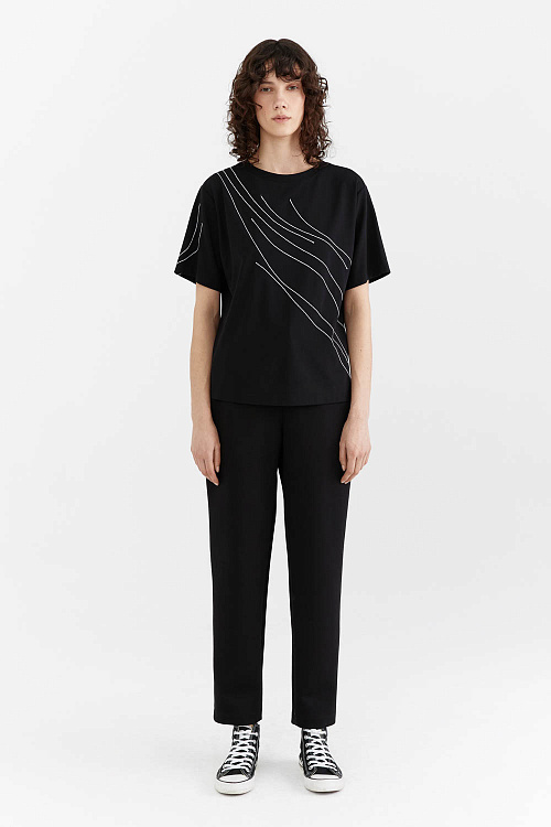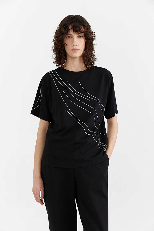 с коротким рукавом и белыми декоративными строчками