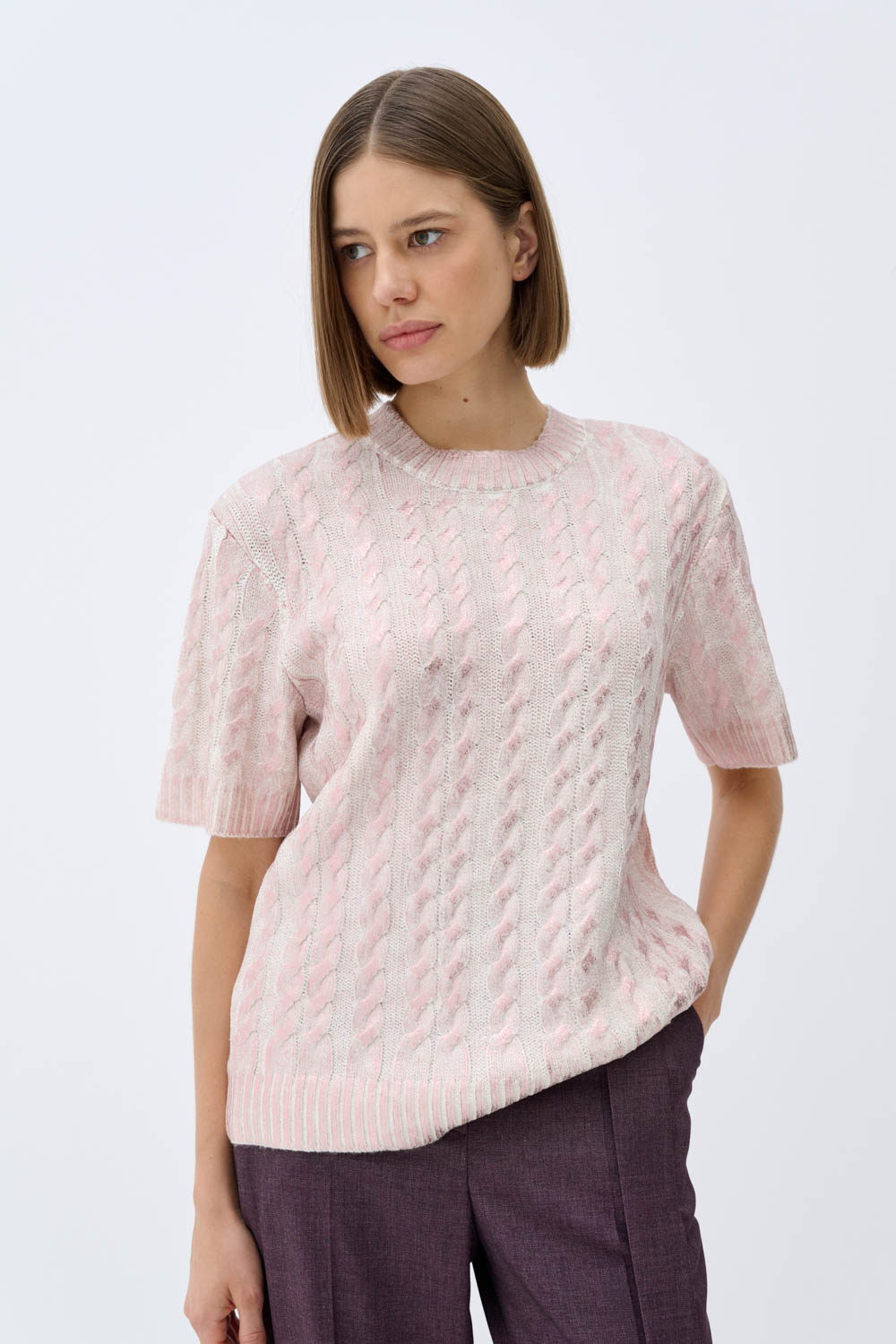Бежевые брюки.
