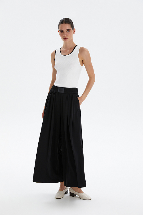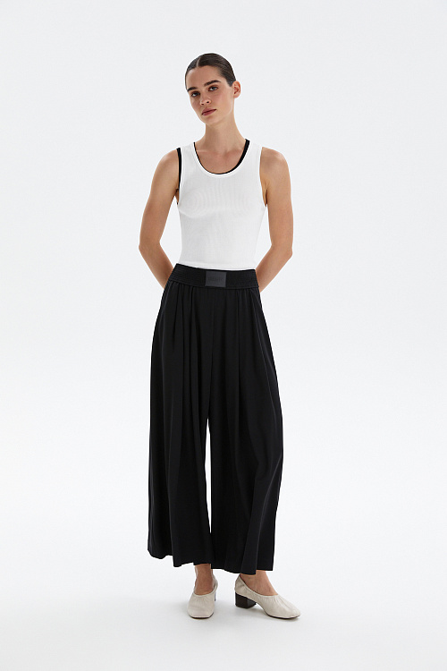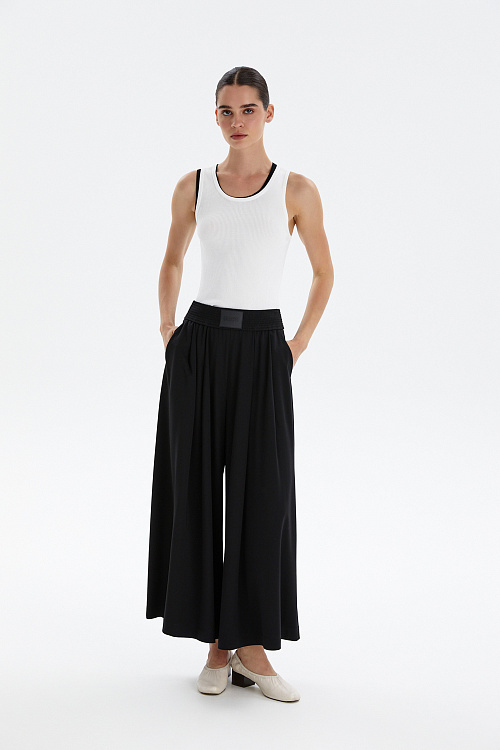 Черные кюлоты из трикотажа средней плотности — идеальное сочетание комфорта и современного стиля.