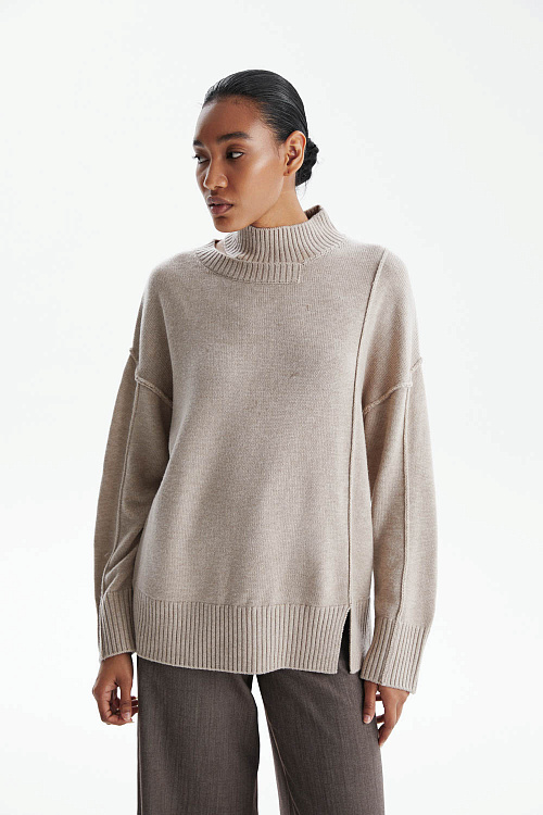 Джемпер из мягкой пряжи в универсальном бежевом оттенке – воплощение элегантного комфорта.