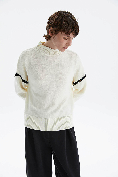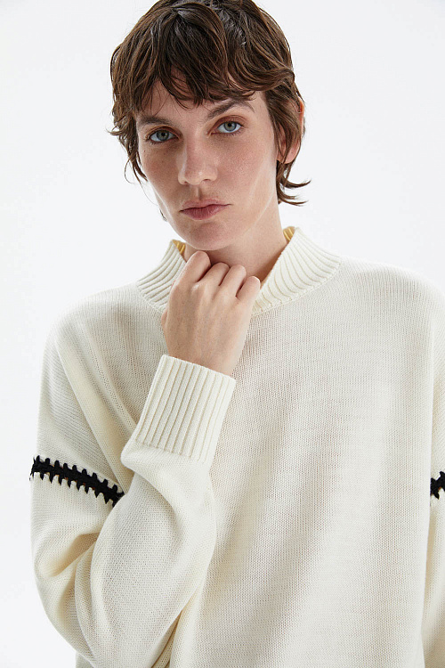 Джемпер из мягкого трикотажа в нежном молочном оттенке — универсальный элемент для стильных повседневных и офисных образов.