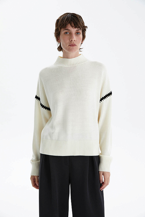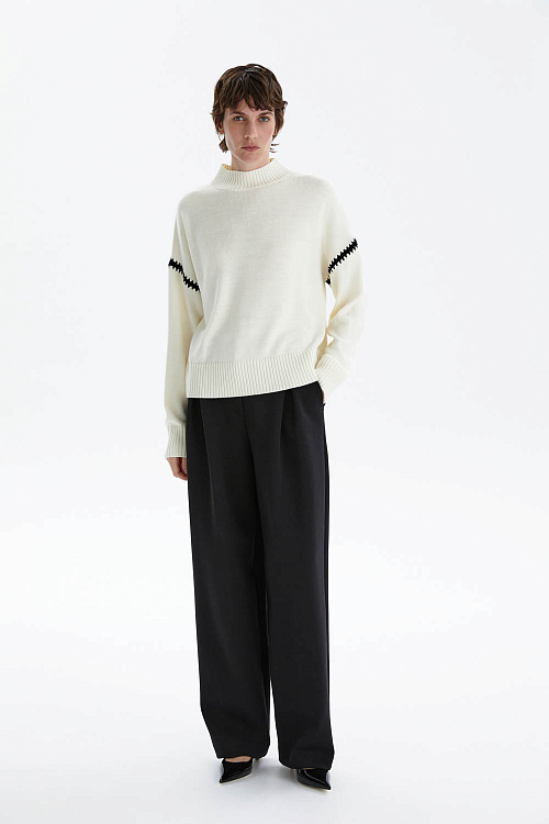 Этот джемпер легко сочетать как с классическими брюками, так и с джинсами или юбками, создавая лаконичные образы на каждый день.
