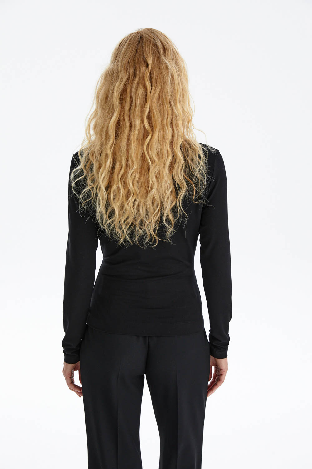 Благодаря универсальному дизайну и глубокому чёрному цвету, лонгслив легко вписывается в любой гардероб: он гармонично смотрится как с классическими брюками и юбкой для делового образа, так и с джинсами или жакетом в более повседневных сочетаниях. Это базовая вещь с утончённой деталью, которая подчеркнёт современный минимализм и вкус.