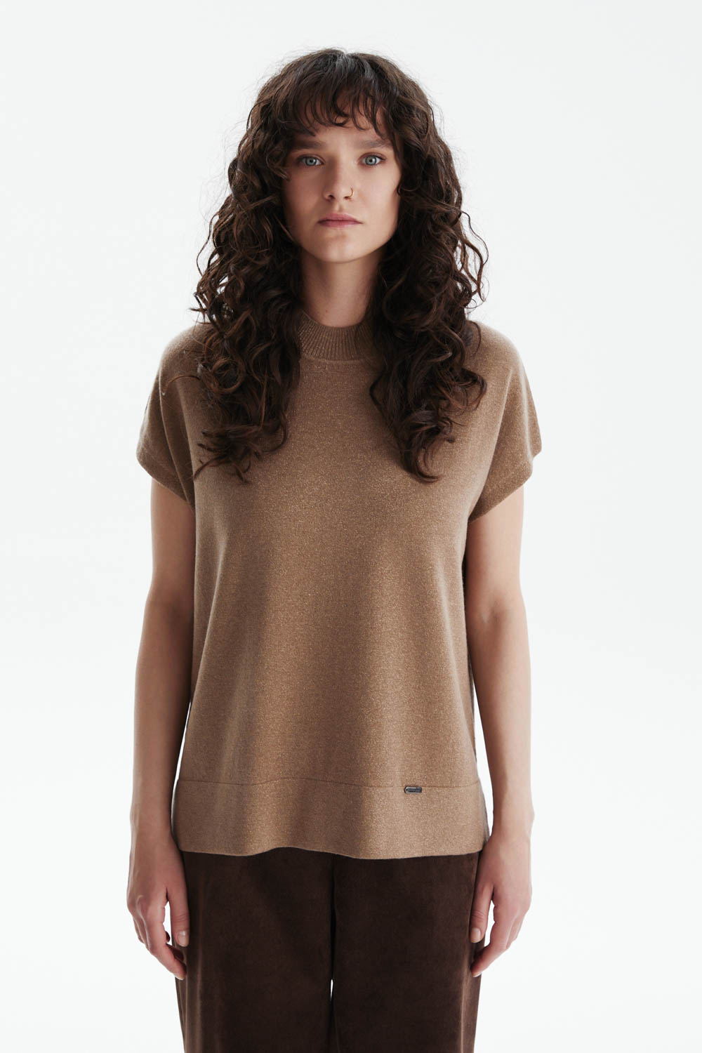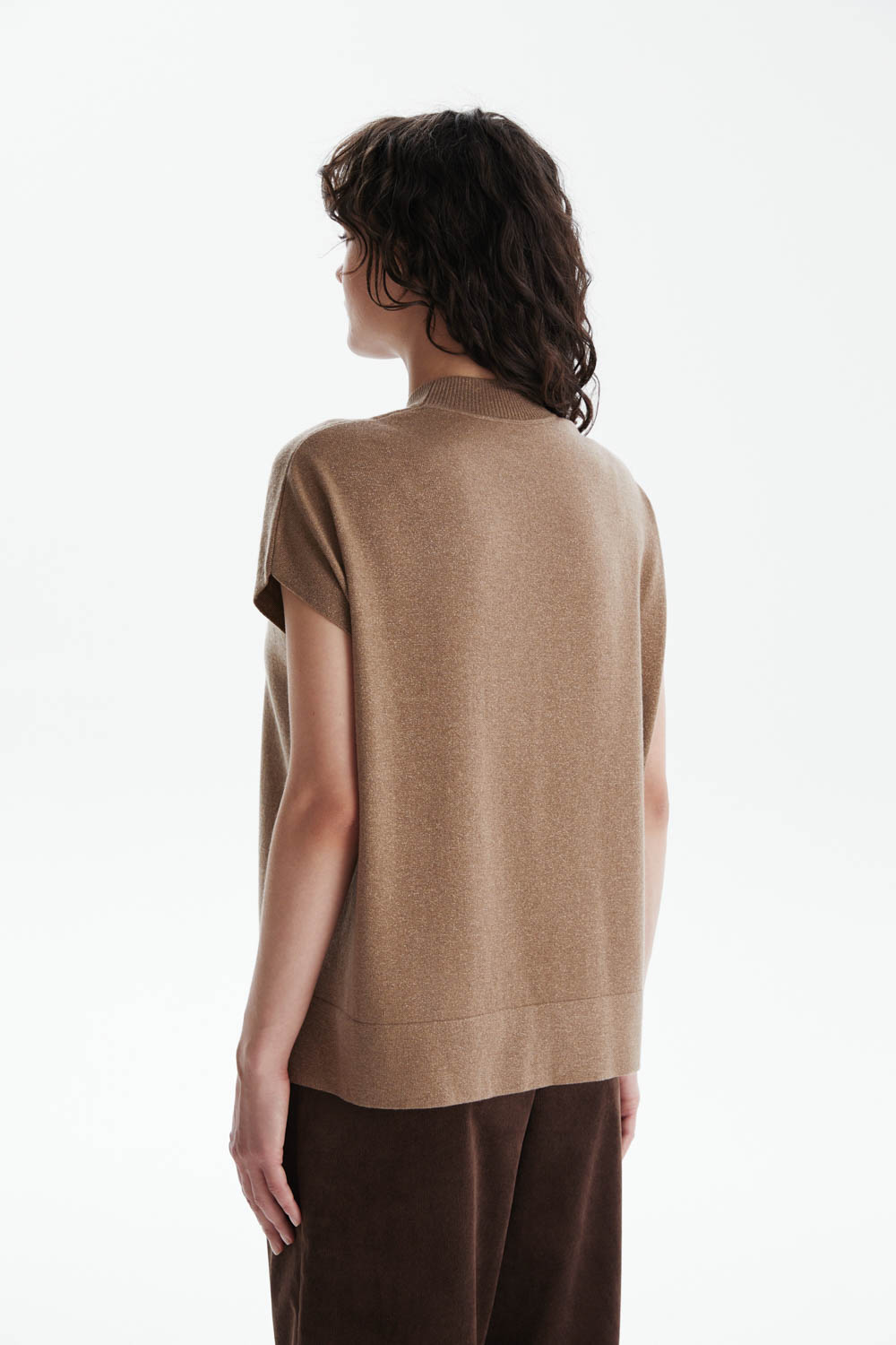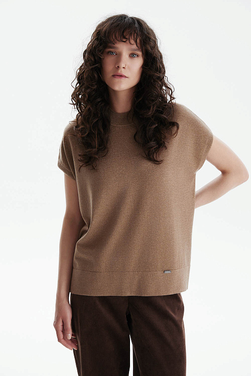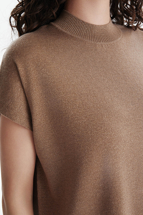 Джемпер из мягкого трикотажа с люрексом в бежево-золотистом оттенке — воплощение сдержанного шика и комфорта.