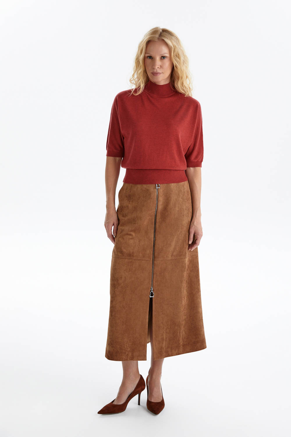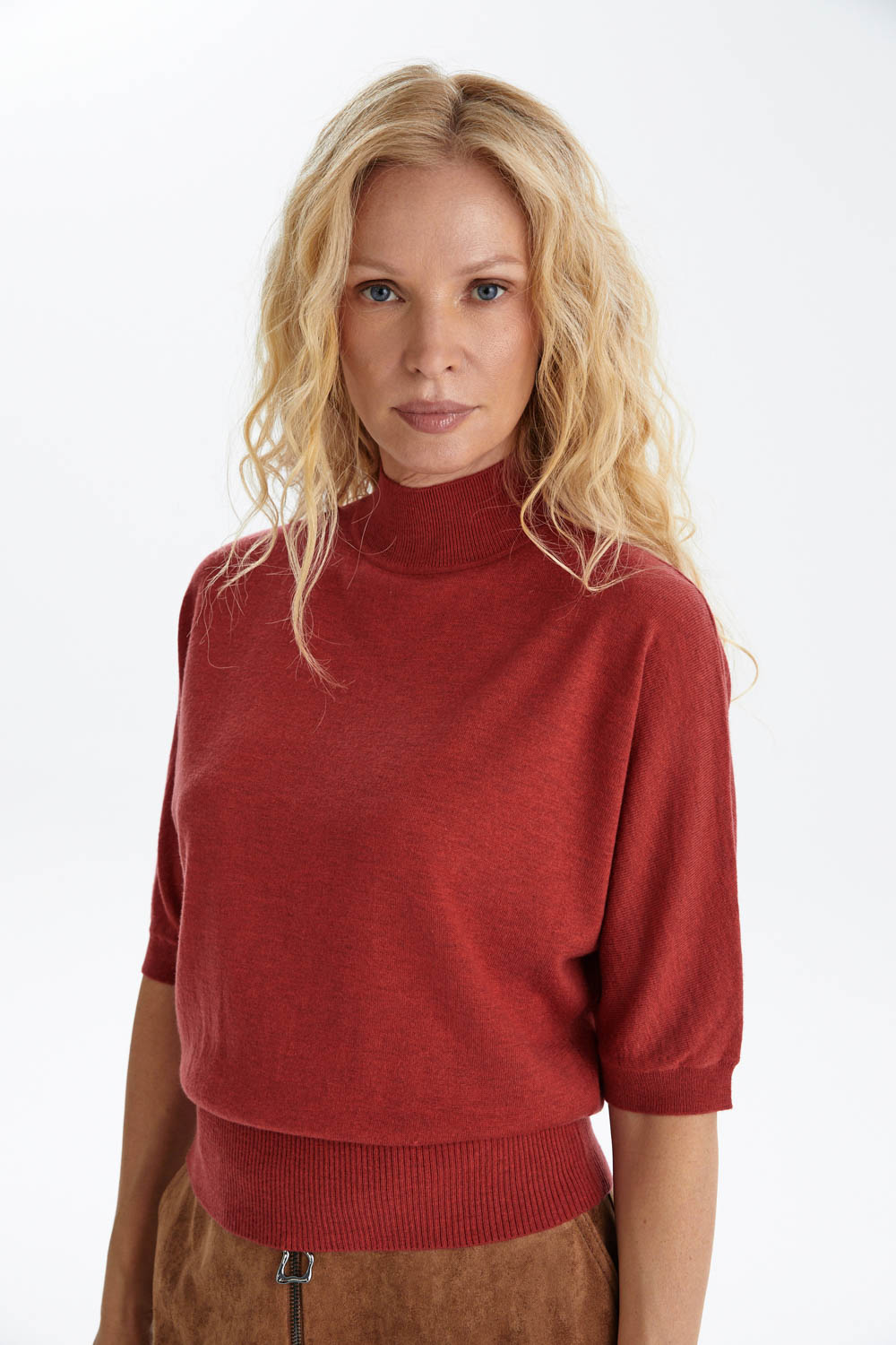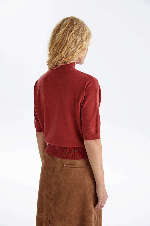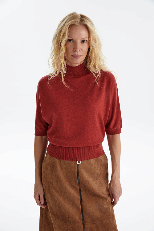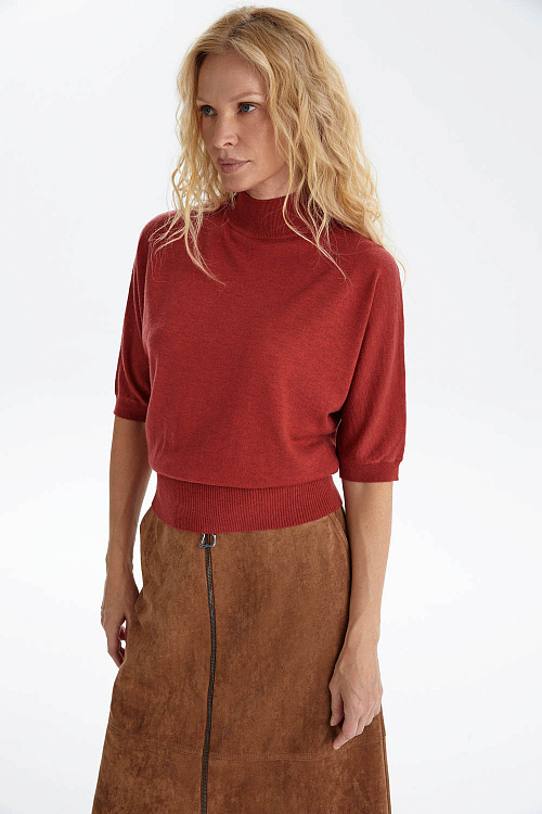 Джемпер из мягкого трикотажа в насыщенном красно-терракотовом оттенке — яркий акцент в вашем гардеробе, который одновременно дарит комфорт и подчеркивает индивидуальность.
