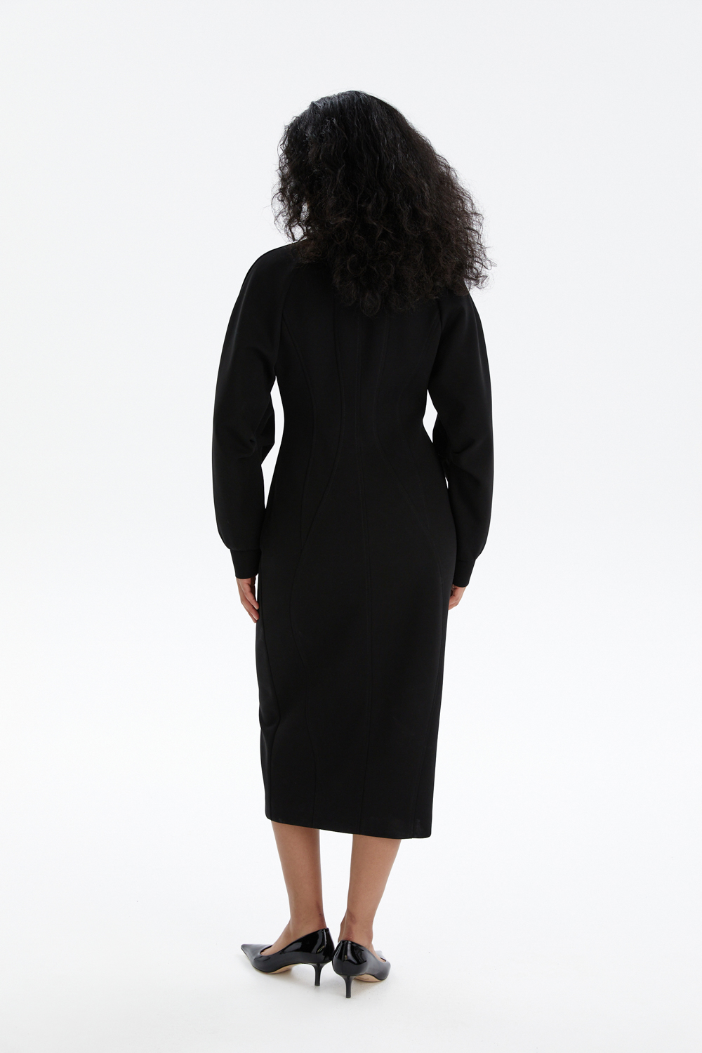 Платье-миди из плотного эластичного джерси чёрного цвета — воплощение минимализма и современного шика.