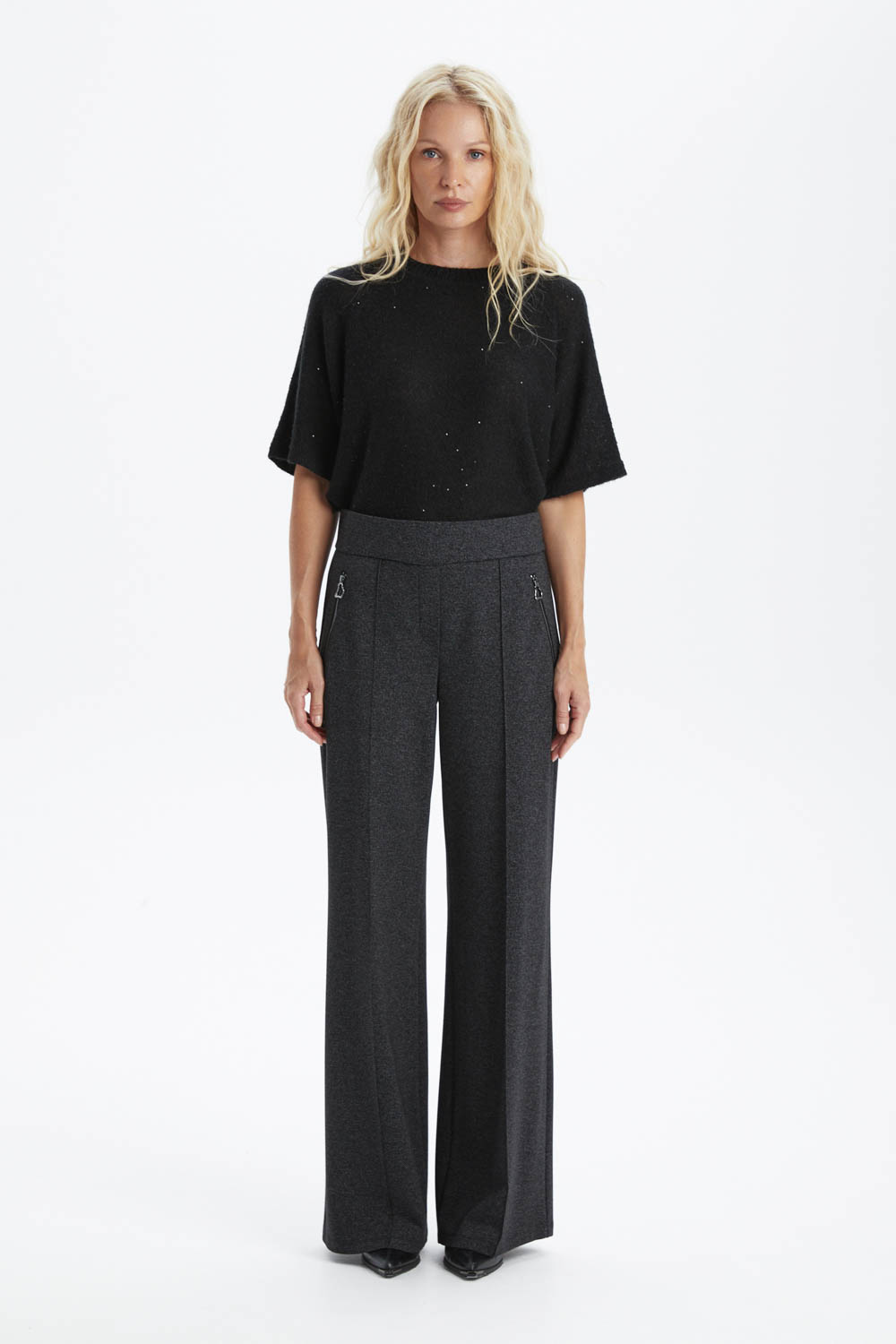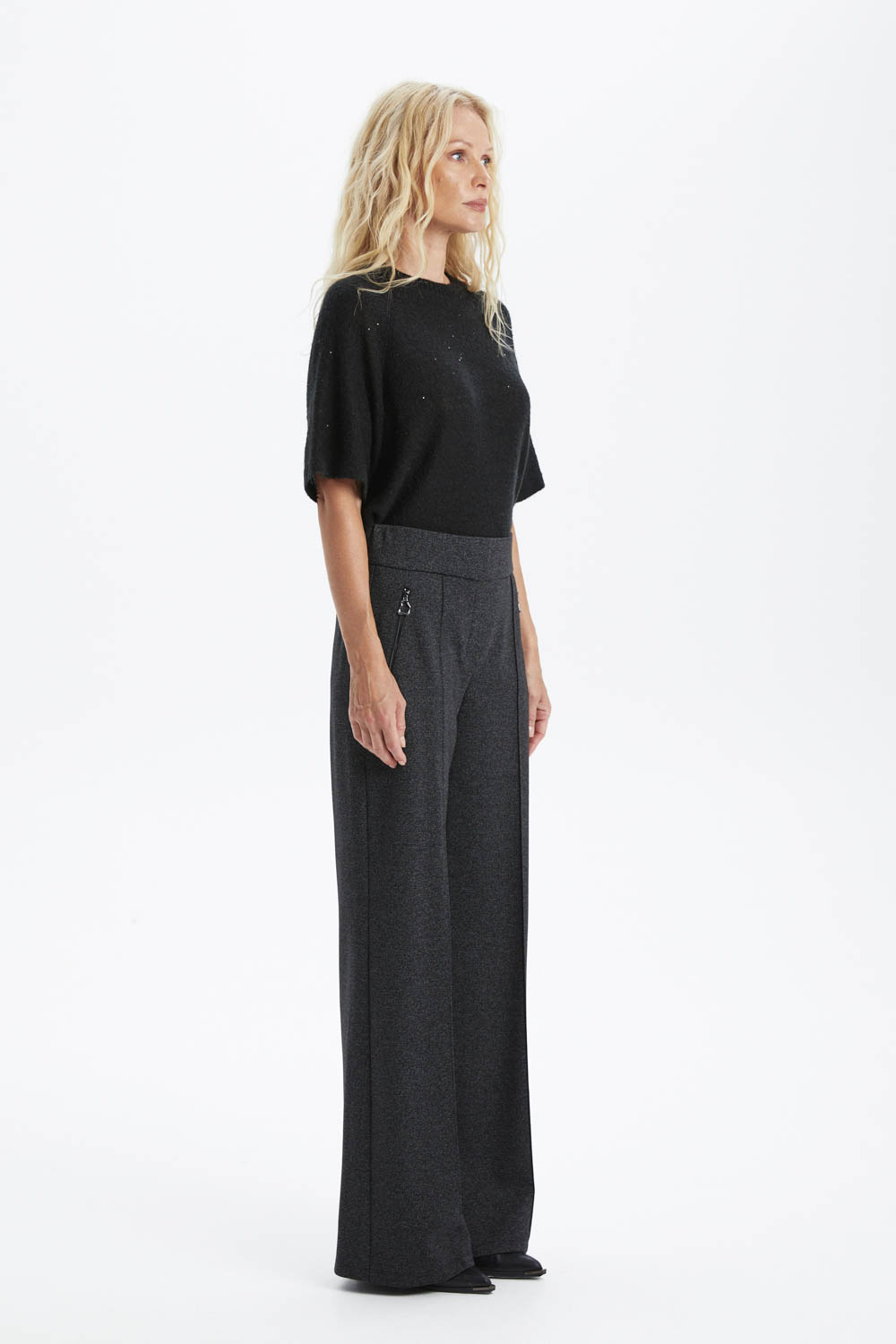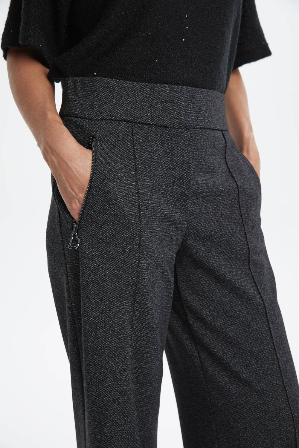 Стильные брюки выполнены из плотного графитового джерси, который обеспечивает комфорт, мягкую посадку и современный, элегантный вид.