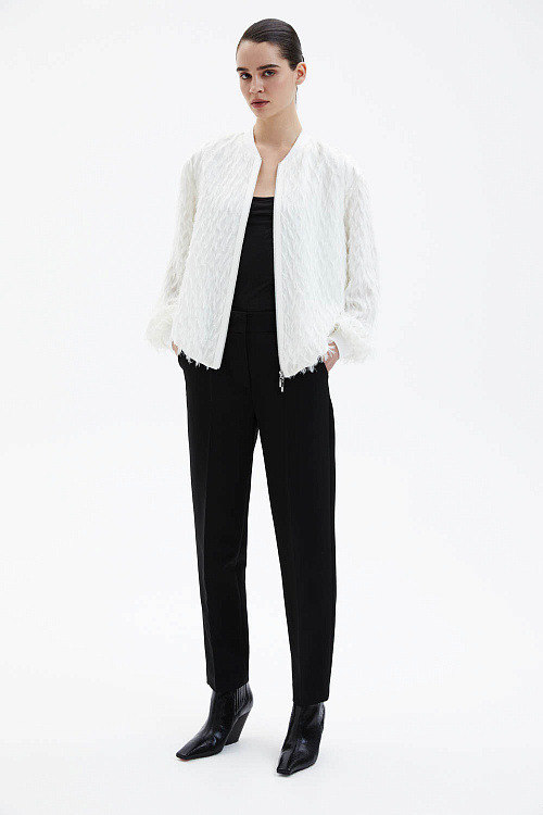 Эти брюки легко интегрируются как в классические образы с жакетами, блузками и рубашками, так и в более современные сочетания с трикотажем или акцентными жилетами. Универсальный чёрный цвет делает модель базовым элементом гардероба, подходящим для офисных и вечерних комплектов.