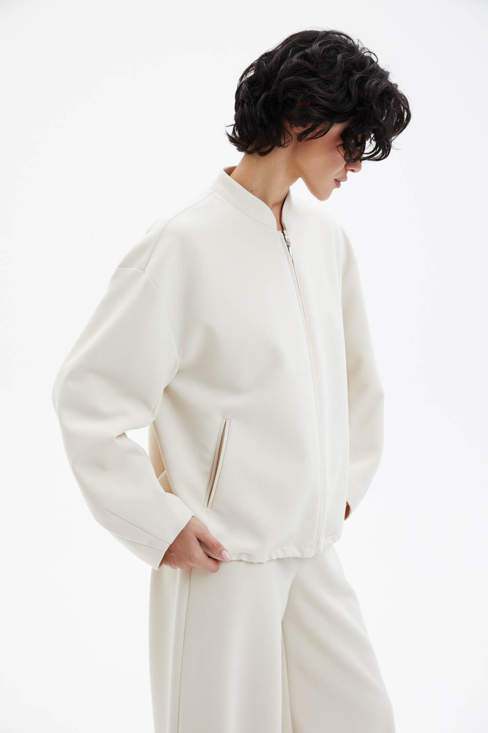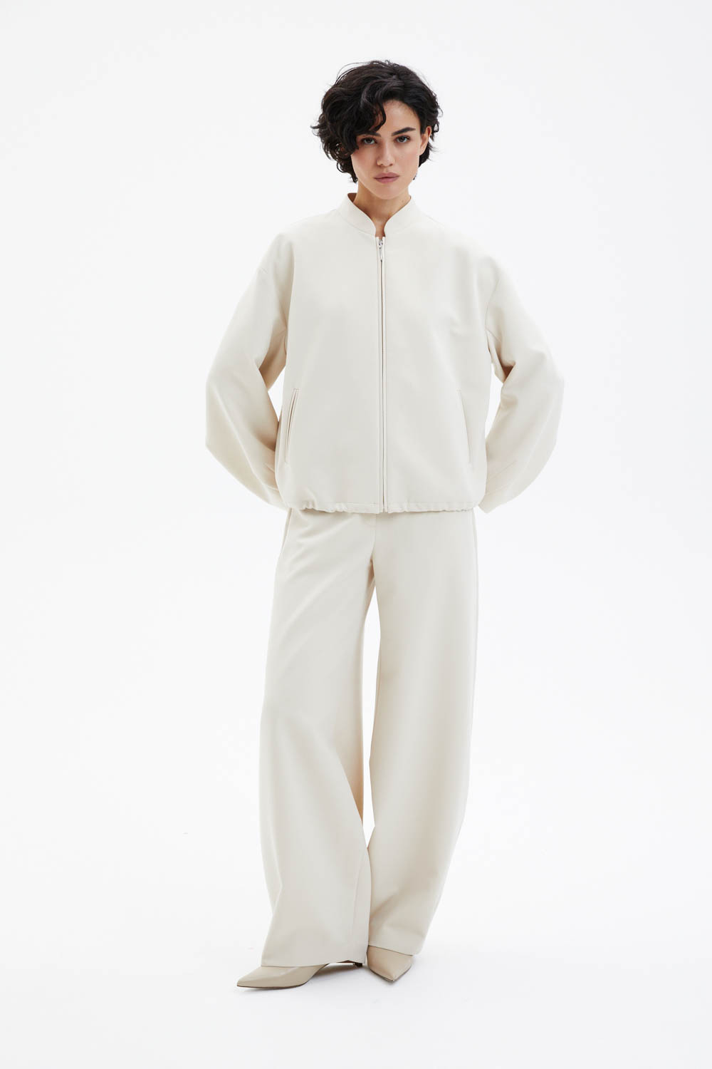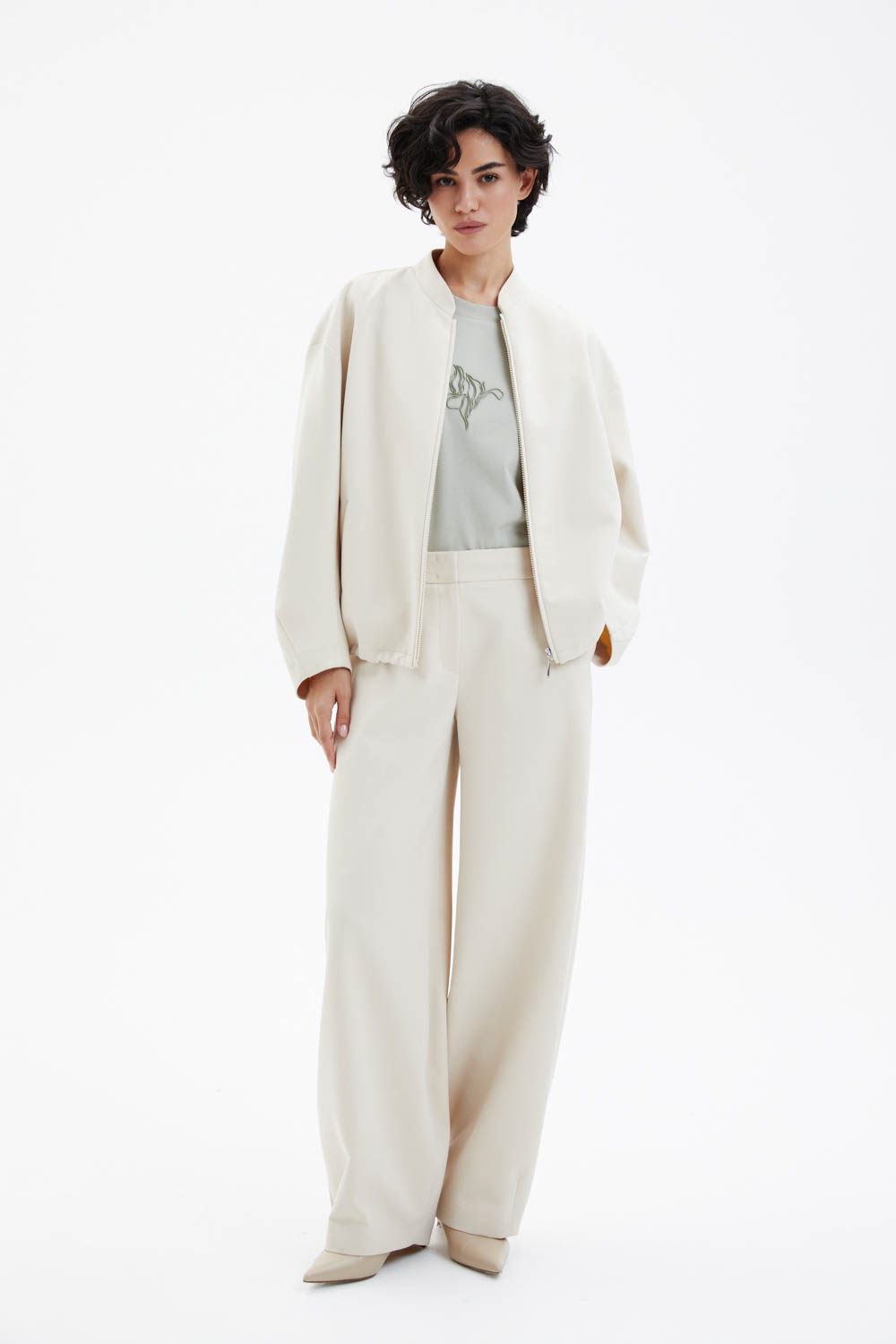Бежевые брюки.