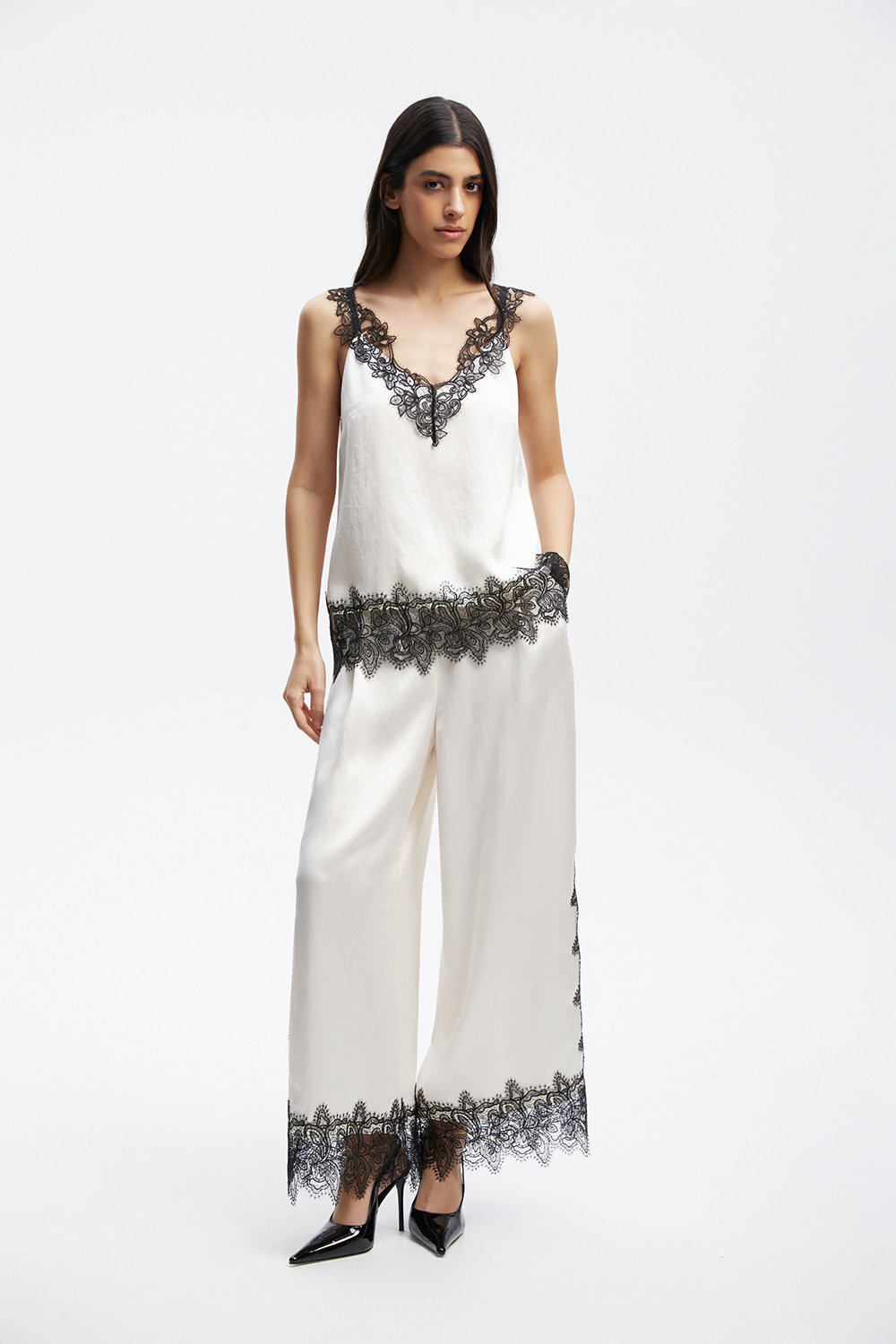 Бежевые брюки.