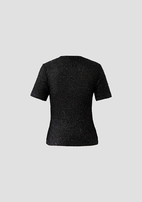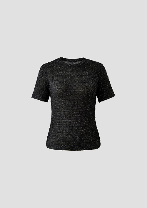 Черная футболка прямого силуэта выполнена из тонкого трикотажа с круглым вырезом. Ткань легкая, мягко прилегает и комфортна в носке.