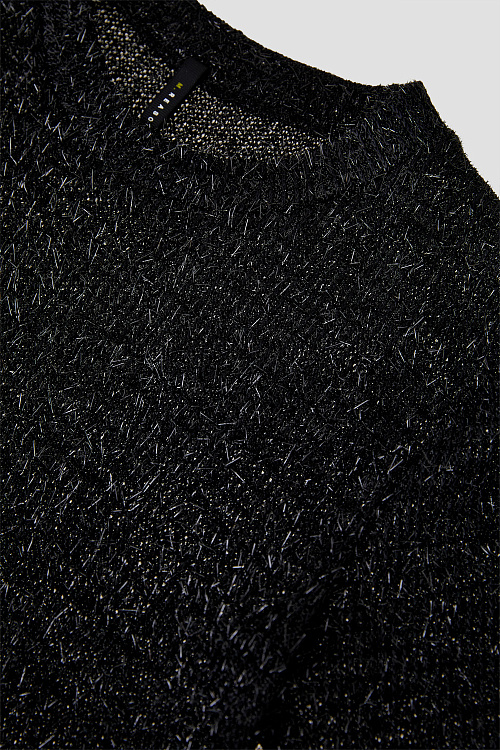 Короткая блестящая бахрома по всей поверхности создаёт фактуру, деликатное мерцание и эффект движения при каждом шаге. Чистые линии кроя сохраняют аккуратный контур.