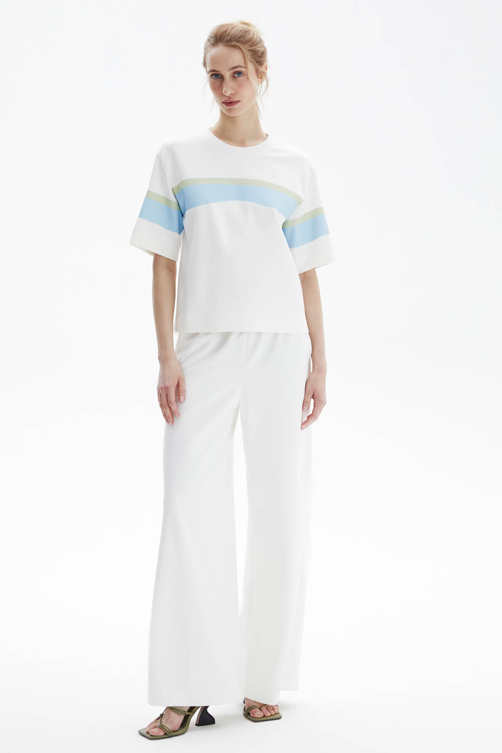 Бежевые брюки.
