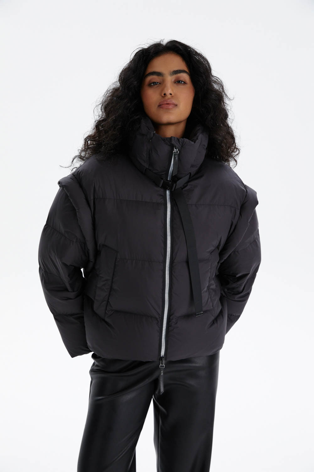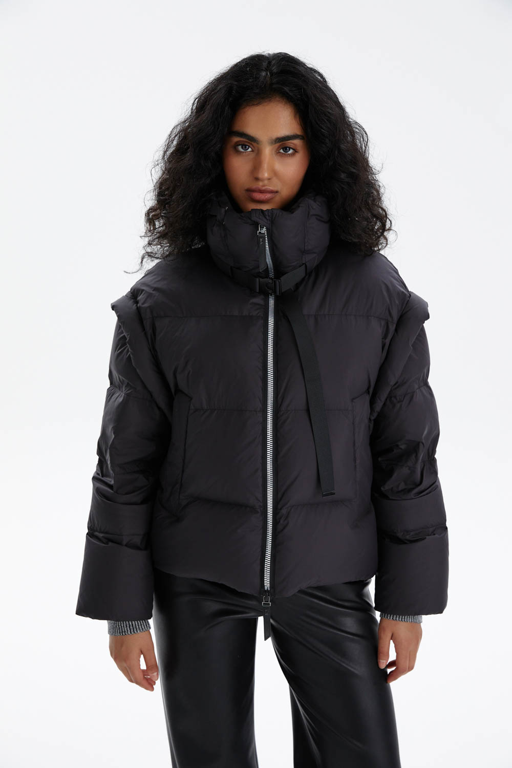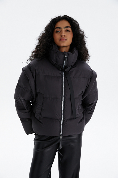 Пуховик-трансформер с отстёгивающимися рукавами — универсальная модель для холодного сезона, рассчитанная на температуру до –15 °C.