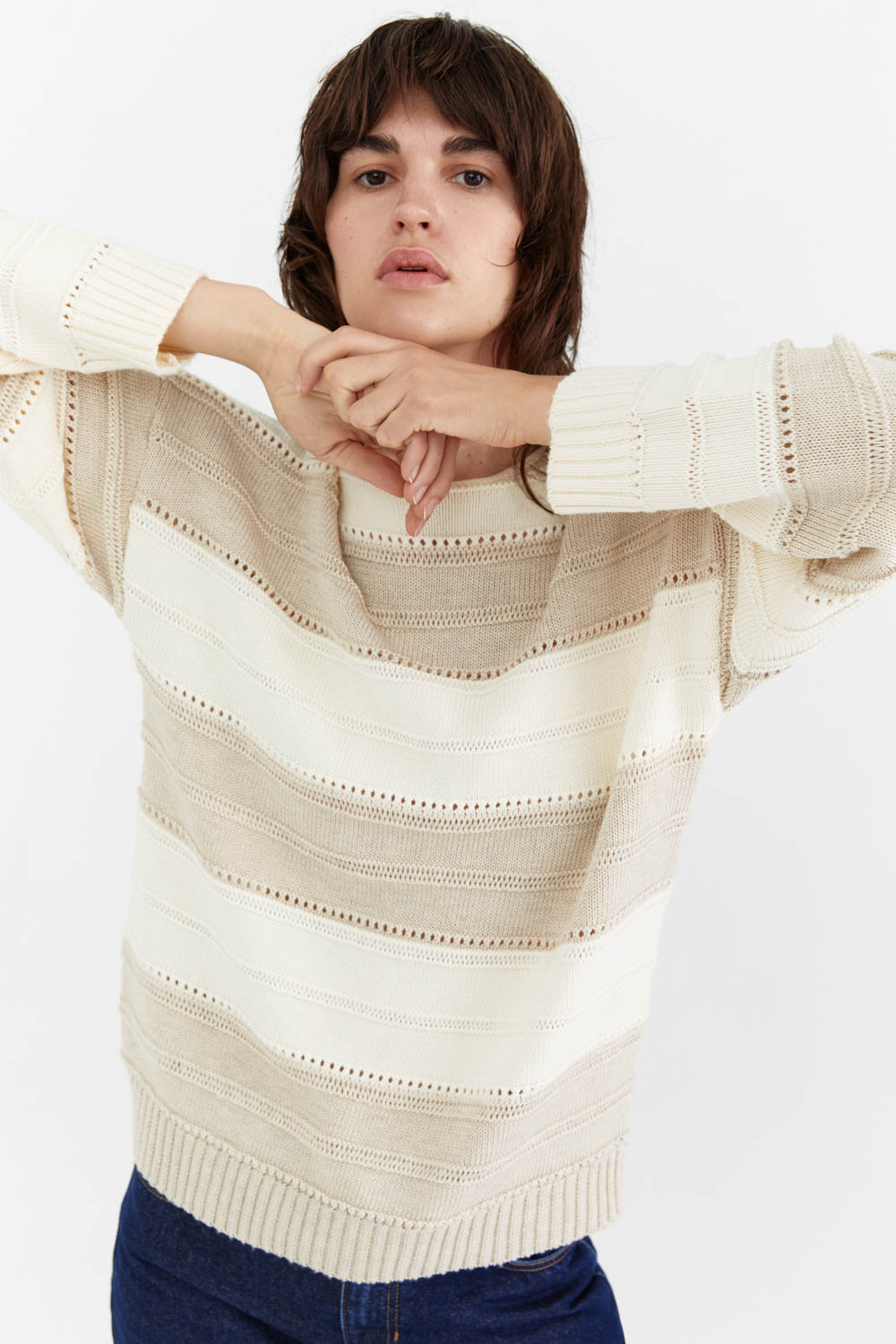 ажурный в полоску свободного кроя