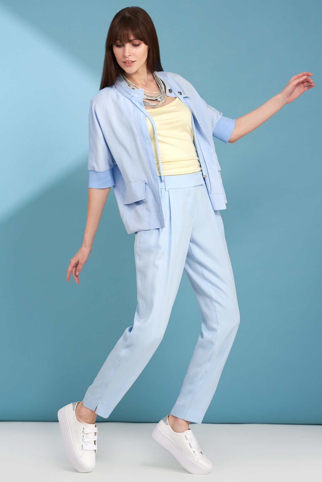 Бежевые брюки.